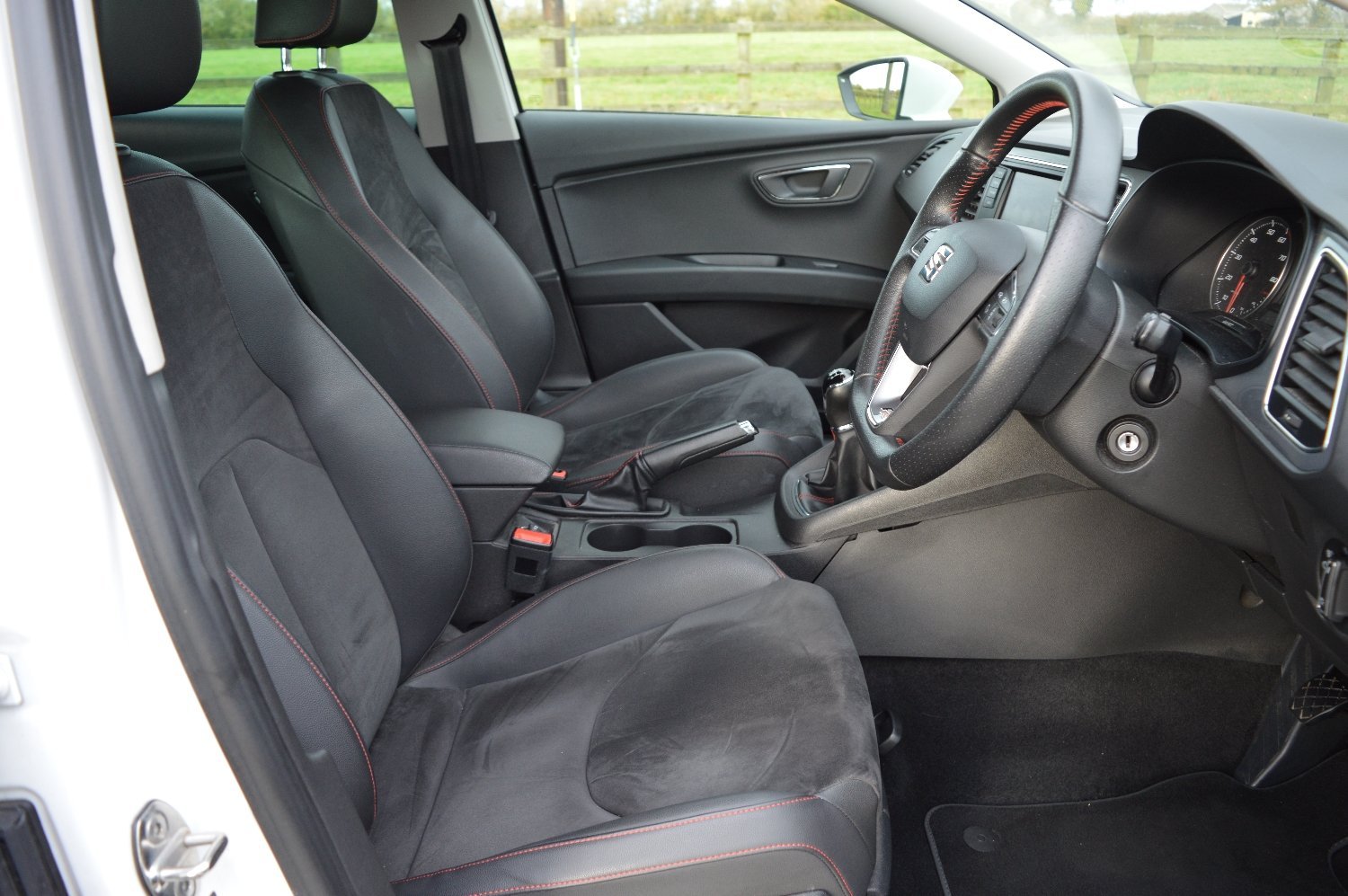 2014/14 Seat Leon 1.8 TSI FR 5 Door Hatchback, One Previous Owner, Only 26950 miles, White with Black Interior, Upgraded Alloy Wheels, Satellite Navigation, Bluetooth Telephone Connection, Climate Control Air Conditioning, DAB Radio and Media, Rear Parking Sensors, Remote Central Locking, Electric Windows, Electric Mirrors, Power Steering, ABS. Full Seat Service History with 5 recorded services at 2508 miles, 6899 miles, 13107 miles, 19075 miles and just serviced at 26597 miles. MOT Expires 06/04/2020 (No Advisories). The car retains all Manuals and 2 Remote Keys. In Excellent Condition Inside and Out. Please See www.markrobinsvehicles.co.uk for more information and pictures.